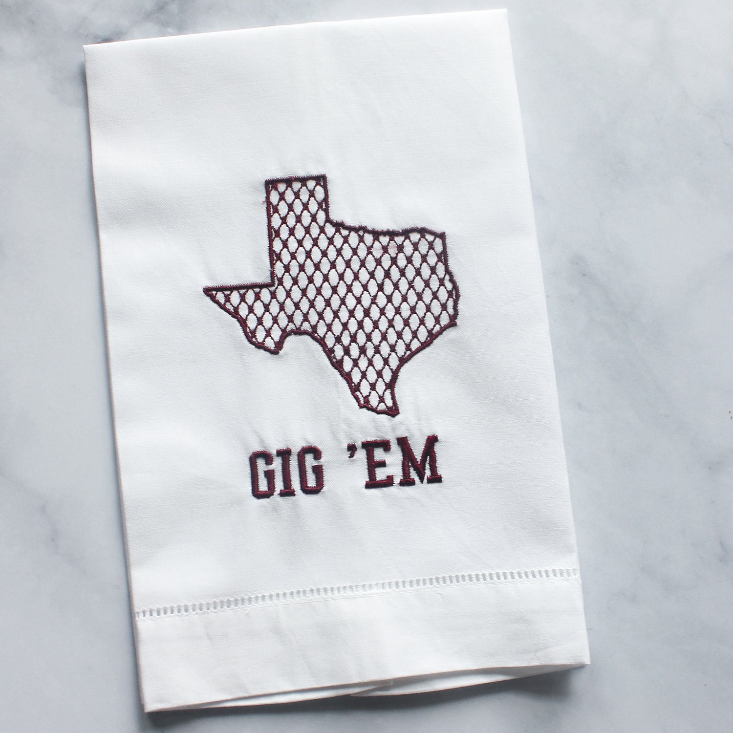 These towels will be stitched and available for pick up/shipping one week (or less!) from ordering, so your home will be ready for the next big game.